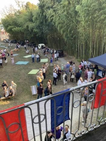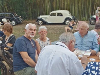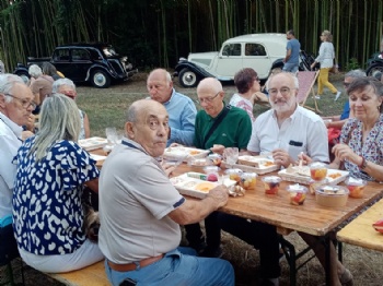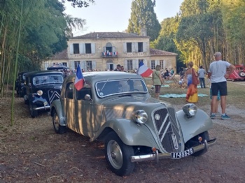 Après le honneurs militaires rendus dans l’après-midi au monument aux morts, la municipalité avait choisie de rendre l’évènement festif. En fin d’après-midi, de 17h00 à 21h00, les festivités débutèrent par une exposition d’une dizaine de voitures anciennes sur la place de la République avec des baptêmes en anciennes proposés aux habitants, suivies d’un défilé des voitures dans l’avenue principale de la ville, puis rassemblement dans le parc du château de Bourdieu en centre ville pour apéritif, discours du Maire et enfin pique-nique républicain en musique grâce à un orchestre avec panier pique-nique fort copieux offert à chaque équipage.