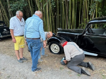 A la fin de la soirée, et pour mettre un peu d’animation, un pneu bien dégonflé sur la 11BL de Joël nous a obligé à changer la roue.