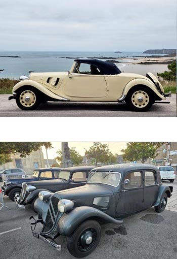 14 traction ont répondu à l'appel représentant 28 participants et quelques traction de la section Bretagne sont venues nous saluer en cours de parcours. Jeudi 9 Octobre 2025 Départ de Blain après un café-Brioche pour la forêt du Gâvre, Guémené-Penfao, Besle sur Vilaine et la Gacilly. -Déjeuner à Peillac (56) au restaurant » la ciboulette » près du pont d’Oust. - Après-midi, Direction Malestroit, Josselin puis La Chèze (22) pour la visite du « conservatoire des vieux métiers » - installation en soirée à « l’hôtel de France » de Pléneuf-Val-André (22) Vendredi 10 Octobre -Visite du Château du Guildo et promenade dans la presqu’île de Saint-Jacut de la mer jusqu’à son abbaye. -Départ pour le « Cap Fréhel » en longeant la côte de Penthièvre par Erquy et les Sables d’Or -déjeuner sur le port de Saint Cast au restaurant « la cabane du pêcheur » Après-midi : visite du « Fort La Latte » et retour à Pléneuf par la côte Samedi 11 Octobre -Visite du Haras de Lamballe (22) -déjeuner au restaurant « le panier iodé » face à la baie de Saint-Brieuc (Grève de Jospinet) Après-midi : Visite du musée « Mathurin Méheut » peintre Breton retour par la route côtière depuis « Jospinet » jusqu’au Cap Erquy et promenade dans ses Landes. et flânerie face à la magnifique plage du Val d’André et ses belles villas début 20e siècle Dimanche 10 Octobre -itinéraire bucolique en direction de la forêt de Brocéliande promenade à Paimpont autour de l’abbaye et l’étang. -Passage aux « Forges de Paimpont » puis déjeuner de clôture à l’hôtel restaurant « le Saint Marc » à Ploërmel (56) avant le retour vers nos pénates.