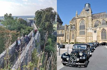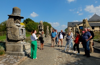 Notre groupe de tractionnistes est constitué de 5 équipages du 44 (Pascal et Françoise, Yves et Viviane, Pierre Michel et Sylvie, Stéphane et Sabine enfin Lionel), 2 du 49 (Denis et Isabelle, et Bernard) enfin Thierry qui représente la Vendée. Le programme : JEUDI : Musée Robert Tatin à Cossé le Vivien VENDREDI : Sainte Suzanne, plus beau village de France, Evron et son impressionnante basilique Notre Dame de l'Epine - Jublains, Ville Romaine SAMEDI : rejoins par 2 équipages de la Sarthe : Jean François et Muriel et Eric - Château de Verdelles sur la commune de Poillé/Vègre - Asnières/Vègre réputé « plus joli village de la Sarthe » - Malicorne et le musée de la faïence et de la céramique - Chapelle Saint Hilaire et Saint Eutrope de Verniette (XIIIè siècle) DIMANCHE : 3 adhérents sarthois nous rejoignent dans 2 Traction (Patrick, Christophe et Thierry), nous sommes à 12 traction Parcours dans les Alpes Mancelles et les toutes petites routes Saint Céneri le Gerei, situé dans l'Orne