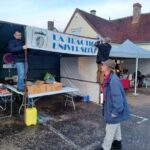 Tous les ans dès 7h30, l'installation du stand à Noyers sur Cher commence par un exercice d'équilibristes pour Marc