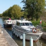 Ensuite direction Rogny à la découverte de l’échelle des 7 écluses. La construction de cet escalier d’eau est à l’initiative du Roi Henri IV aidé de son Ministre Sully et de l’Ingénieur Hugues Cosnier.