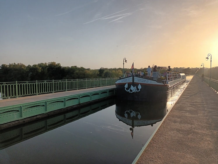 Sur le Pont Canal, une péniche au coucher du soleil!.