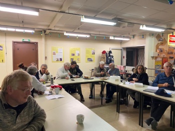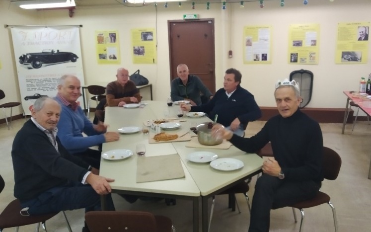 Le partage de galettes accompagnées dans un premier temps de vin chaud (en quantité très raisonnable, je le précise avant que vous lisiez la suite) nous a amené à couronner Marcel roi pour ce nouveau début d'année; Il arbore fièrement sa couronne à droite sur la photo prise par Didier, notre excellent photographe du jour que nous remercions (vous l'aurez compris, il n'est pas sur la photo!).
