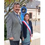 Sympathique accueil de Madame le Maire, Catherine Stroh sur la place du village en compagnie des clubs 2CV dont Les Filles de Levallois, des clubs venus de Belgique et de Hollande, et des membres de La Traction universelle...