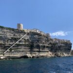 Un parking nous est réservé à proximité du port de Bonifacio afin d’embarquer pour une petite croisière en mer à la découverte des côtes de l’extrême sud de la Corse, avec l’étonnante grotte marine de Sdragonato et la vieille ville de Bonifacio, perchée à 30 mètres au-dessus des majestueuses falaises calcaires, et qui domine l’étroit détroit de 12 km seulement séparant la Corse de la Sardaigne.