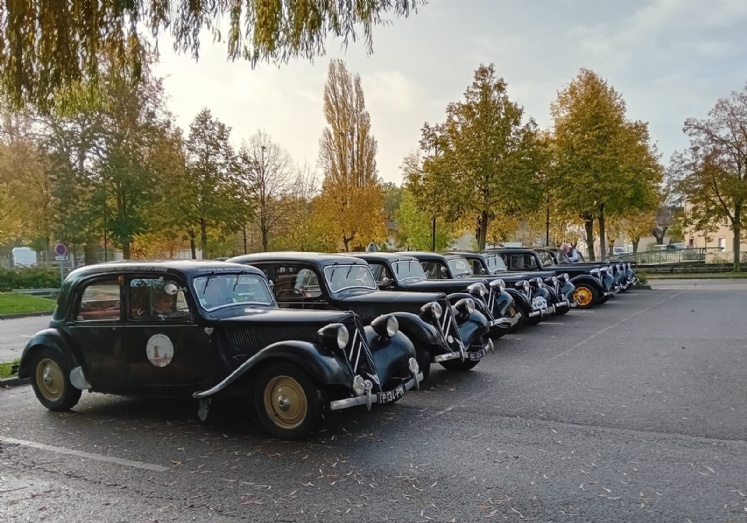 Ce dimanche 12 novembre, nous sommes 24 au rendez-vous que nous ont fixé Brigitte et Pierre à Vouillé. Les "Traction" bien alignées attendent le départ pour rugir sur les routes détrempées..
