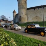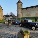 Une fois tout le monde réuni, la question a été « on va où ? » A Vaux le Vicomte? Pourquoi pas? On fera une photo de nos voitures devant la grille du château qui est fermé. Las, le château est bien fermé mais le parc est ouvert, sous restrictions et contrôles divers, impossible de se garer, de faire des photos, bref la foule. Décision a été prise de pousser jusqu’au château féodal de Blandy les Tours ou la aussi il nous fut difficile de s’arrêter.