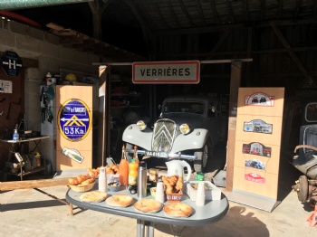 Le temps n’étant pas clément, Régis nous a installé des tables dans son garage.