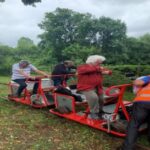 Après le pique-nique, 16 km en vélorail sur un tronçon de la ligne de chemin de fer de Saintes à Coutras.